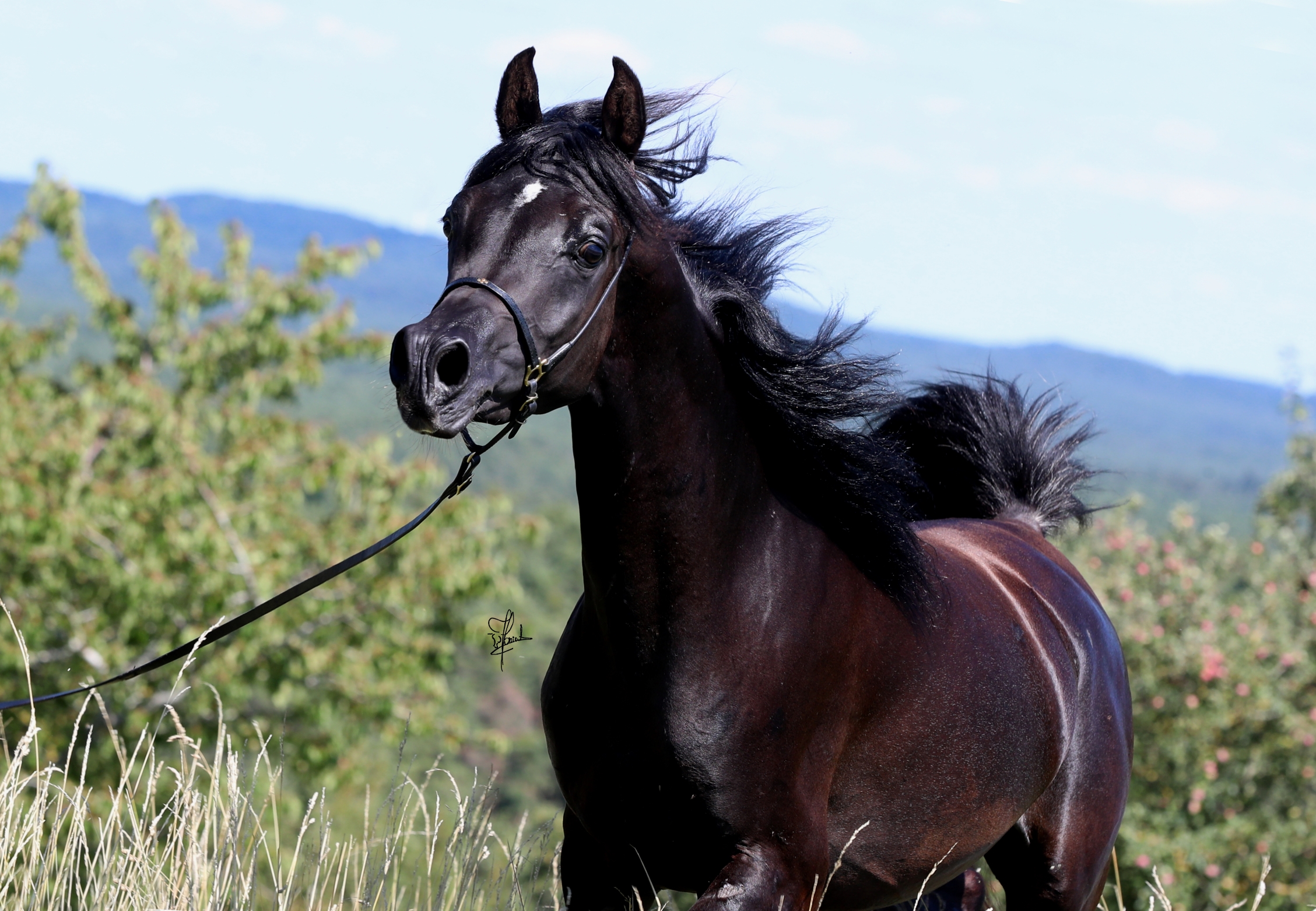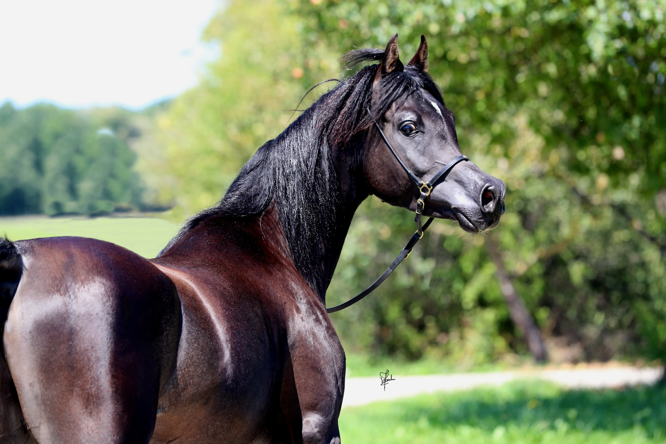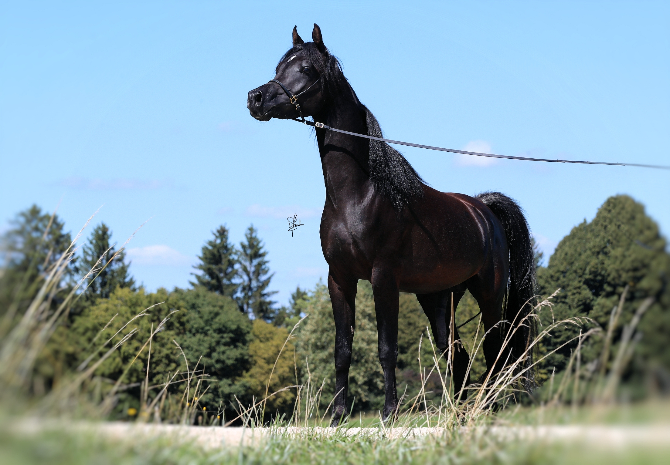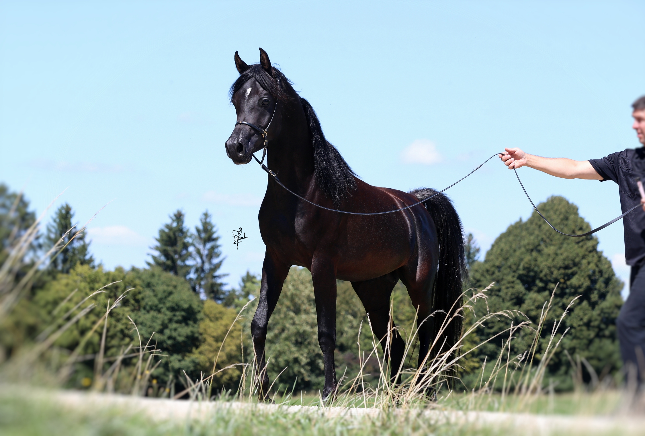Unser Miraj ist ein Sohn des legendären Spitzenvererbers Magic Magnifique. Magic Magnifique ist weltweit einer der typvollsten schwarzen Araber und zählt zu den top Vererbern der Extraklasse. Er, sowie seine exquisite Nachzucht, haben weltweit Gold Championats-sowie Most Classic Head Titel gewonnen. Magic Magnifique ist ca 1,54 groß.
